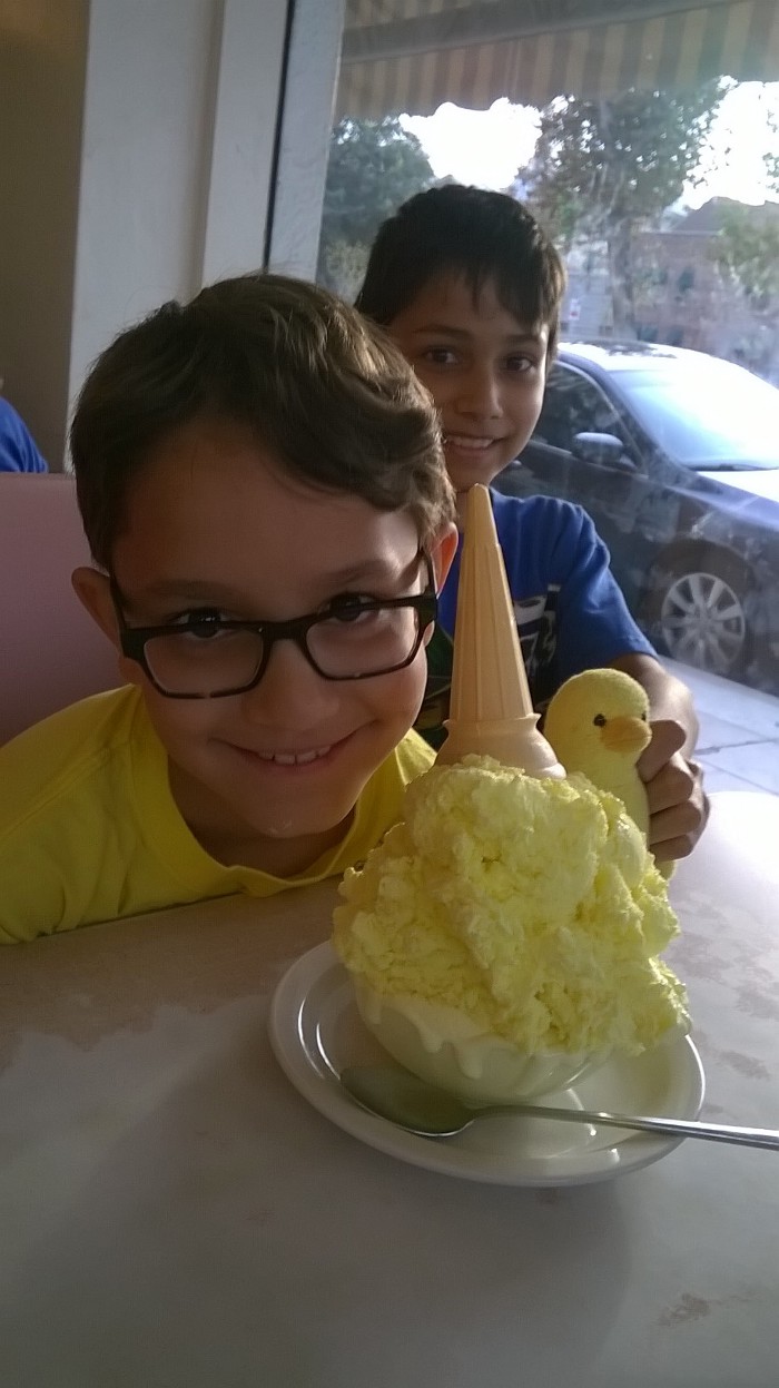 I can’t remember exactly what happened this past weekend. Homework played a part, as did a family drive to Hanford on Saturday afternoon for the biggest ice-creams we have ever eaten: